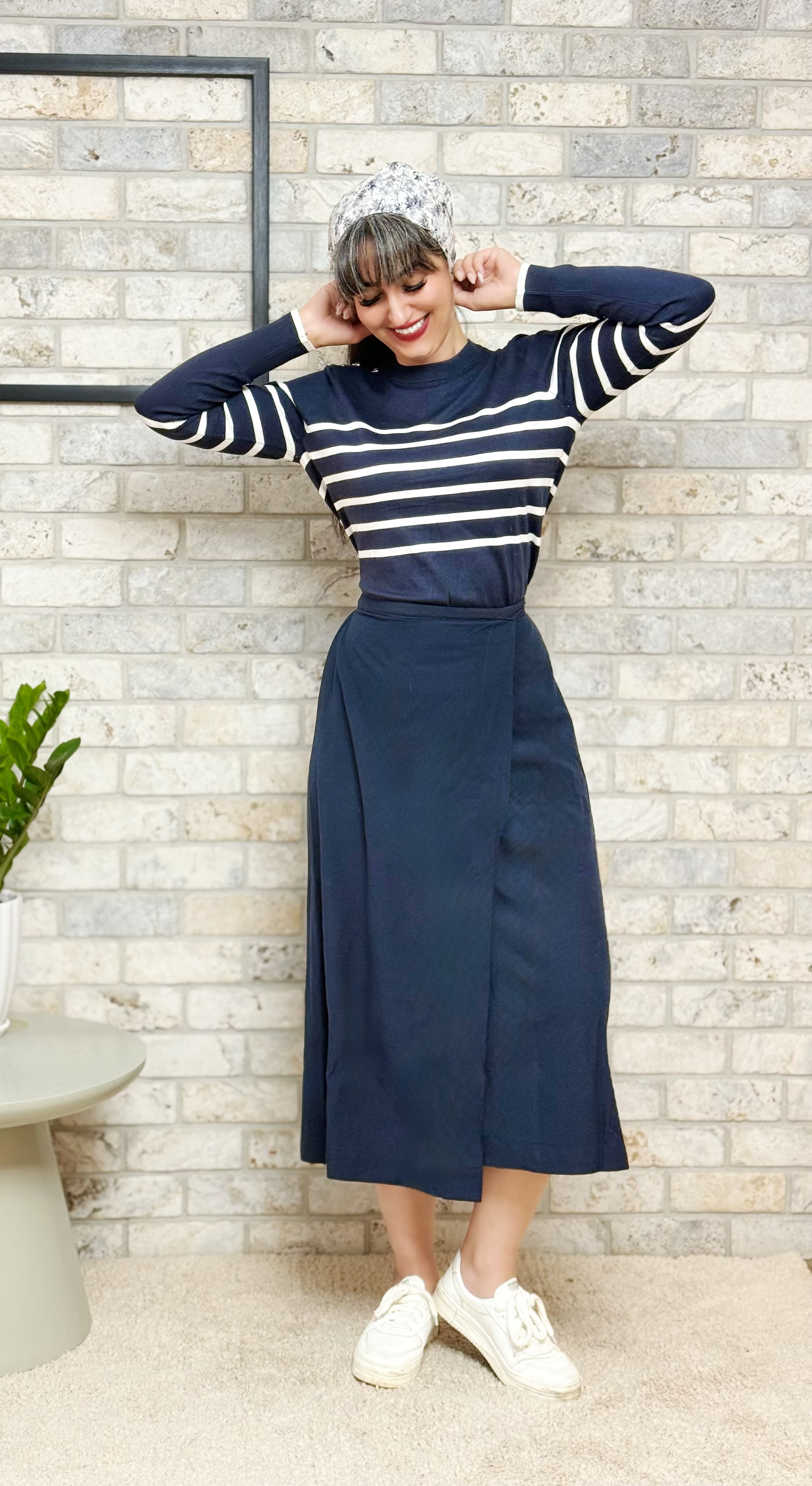 پلیور بافت راه راه سورمه ایی سفید زنانه اورجینال